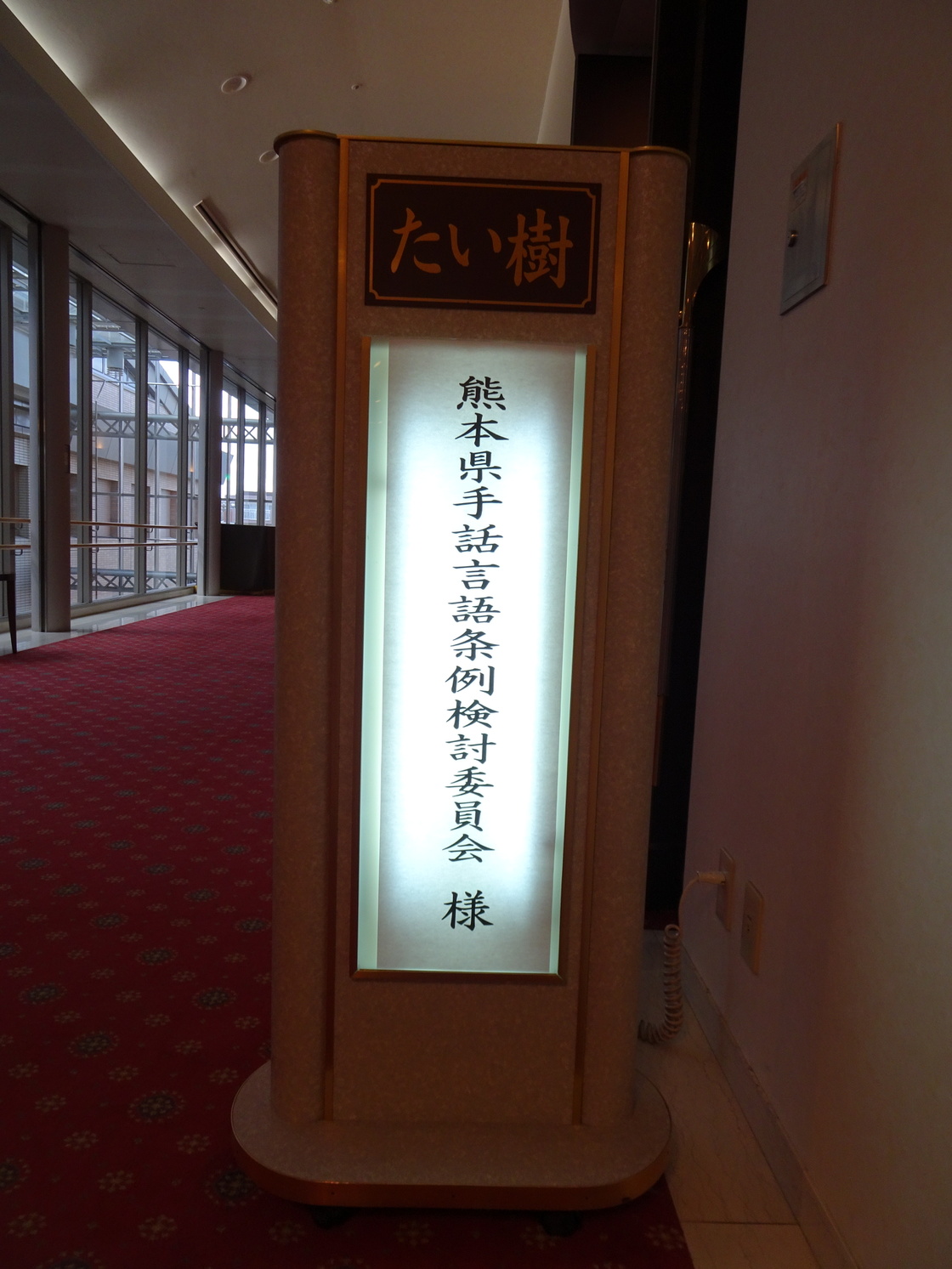述べた内容は、①終戦直後、私たち聞こえない者・聞こえにくい者の福祉は、聞こえない者・聞こえにくい者の手でと、ろう者協会を立ち上げたこと。この時の願いとして、手話はコミュニケーションだけではなく、思考するもの、生きるための命であり「言語」であることを社会に広く理解していただき、手話言語を共有し共存社会にすること、②しかし、社会からは長いこと理解されなかった。聞こえにくい者たちはこれでも手話言語を守り、発展させて現在の姿にしたこと、③手話通訳者が生まれて、手話通訳者の活躍により、手話言語は理解を広めたこと、④国連の障害者権利条約に「言語に手話を含む」となり、日本では障害者基本法に「言語に手話を含む」となったこと、⑤手話言語条例の制定が全国各地に広がってきていること、⑥熊本県の手話言語条例は、手話言語だけではなく、コミュニケーションに配慮を必要とする人たちも対象にしていること、などです。他に、熊本県の担当者から、熊本県の手話言語条例の内容の説明が行われました。