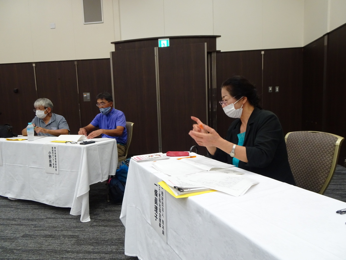 議題は、①令和3年度事業報告、②令和3年度会計中間報告、③令和2年度会計決算報告、④令和4年度事業計画案、➄令和4年度予算案、⑥提出議案の採択、⑦大会宣言案と大会決議案、⑧その他ですが、今回は時間制限があり、⑥提出議案の採択と任期満了に伴う役員改選のみ行なわれ、残りは3月26日(土)に引き続き行われます。