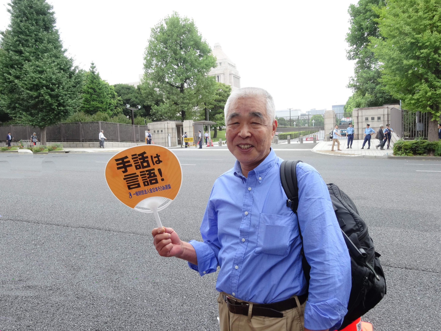 手話言語法制定の実現を求める全国集会に参加した松永朗氏(2015年8月28日 東京都千代田区)